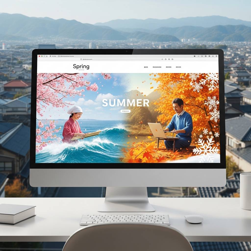 ウェブサイトを訪れたユーザーが最初に目にするメインビジュアルは、いわばサイトの「顔」です。この部分に季節感を取り入れることは、ユーザーに新鮮な印象を与え、サイトの直帰率を下げる非常に効果的な手法として知られています。四季の移ろいを視覚的に伝えることで、常にサイトが手入れされているという安心感と活気を与え、ブランドの魅力をさらに引き立てることができます。